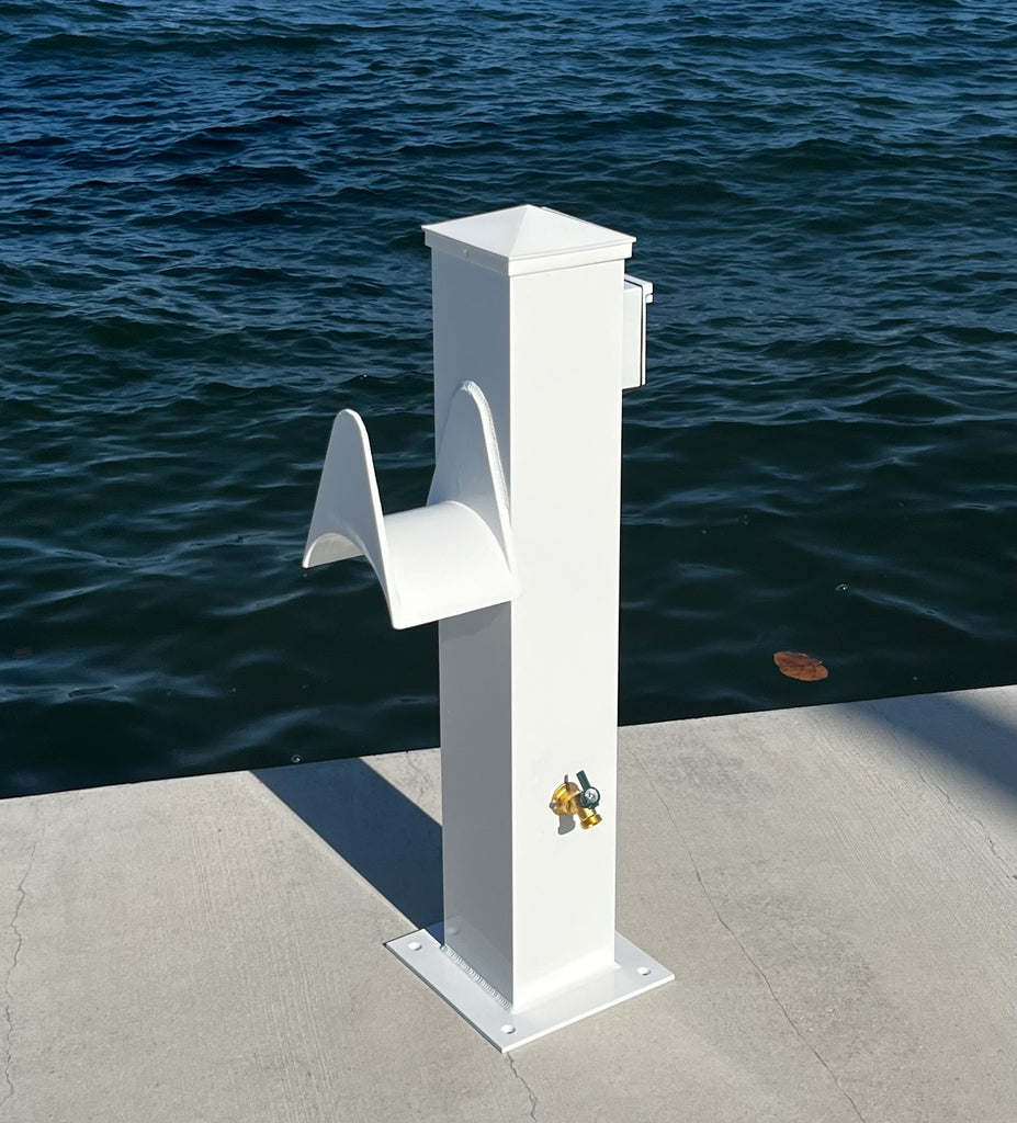 For additional versatility, the MFDPEDWE366x6 can be configured to include water spigots, hose bibs, LED lighting, or metering options, providing a complete dockside utility solution in one compact form factor. Built from marine-grade fiberglass composite materials, this pedestal resists UV damage, moisture intrusion, and salt corrosion — delivering reliable performance season after season.